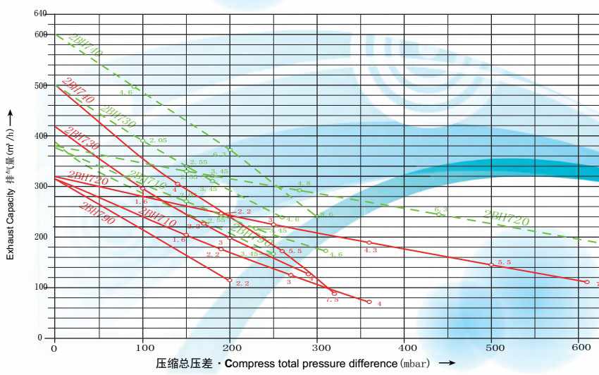 負壓:即真空度,注釋同上,在運行中負壓與流量的比例情況及數據,參考選型曲線;右上角有《在線選型樣冊》,可以在線預覽;